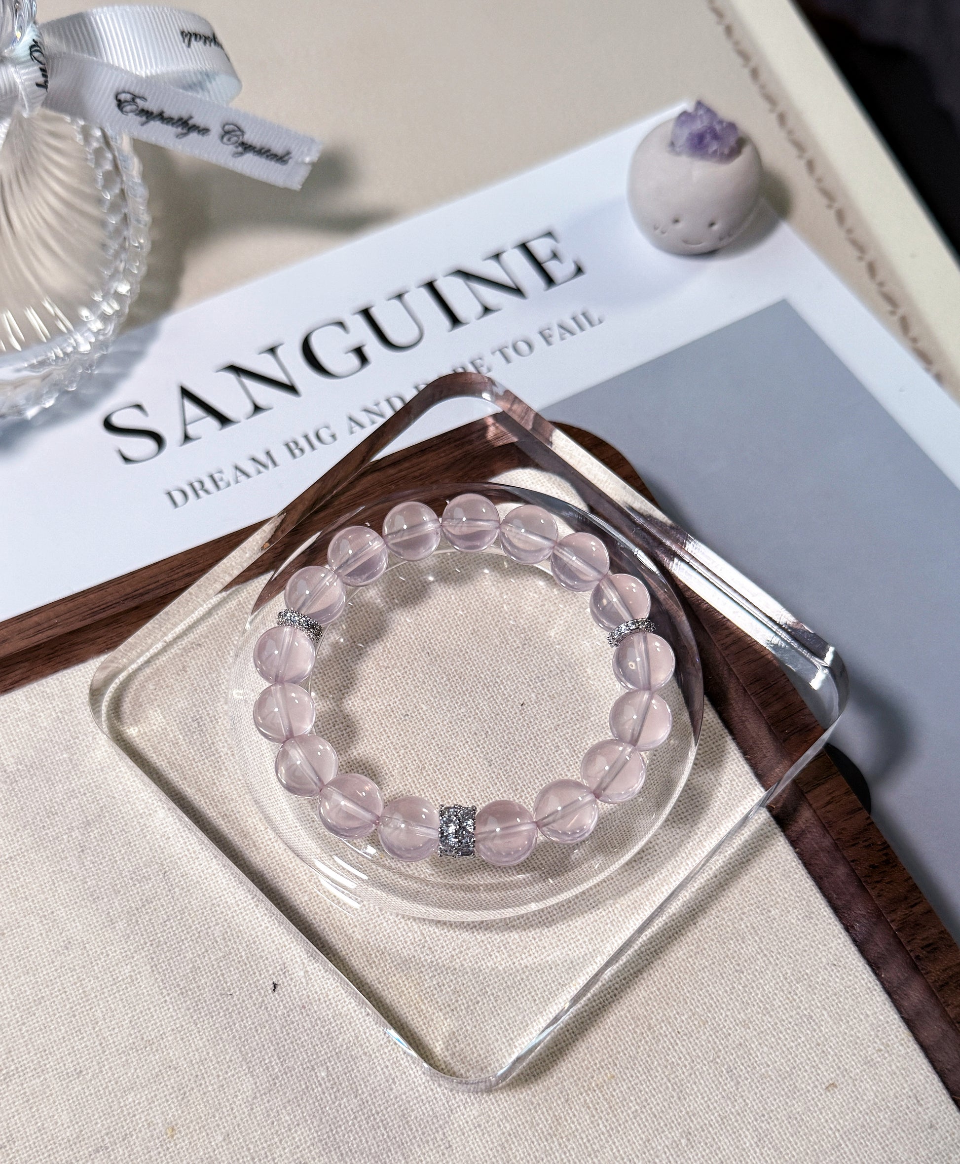 Cupid's Glow, crafted from translucent 10mm Madagascar pink quartz, is perfect for enhancing relationships and attracting romance. Ideal for those seeking deeper emotional bonds, it resonates with the heart chakra, promoting love and compassion. Wear it to social events, dates, or family gatherings to foster intimacy and meaningful connections. This elegant bracelet ignites passion and warmth, transforming interactions and deepening emotional ties. Embrace its gentle energy for a life filled with love and harmonious relationships.