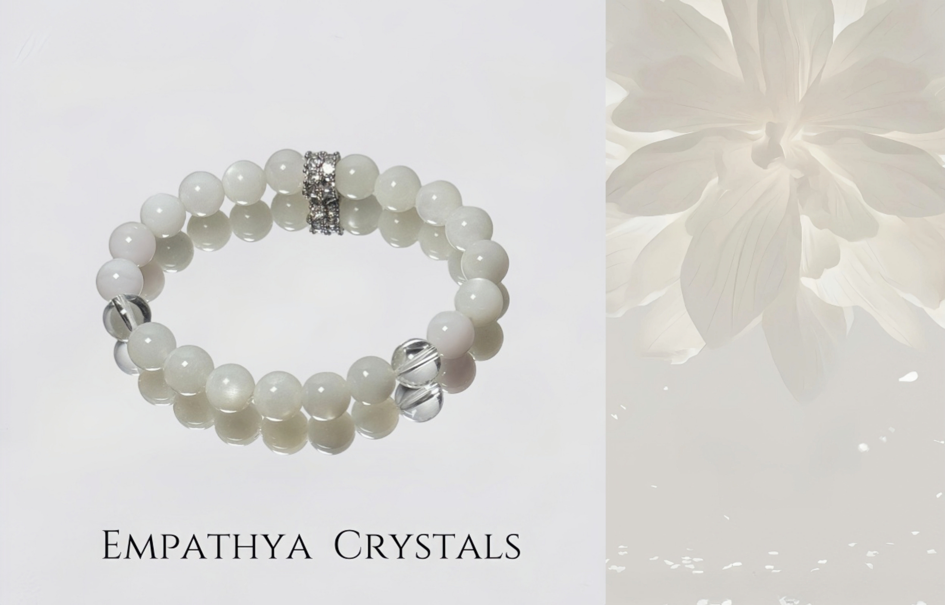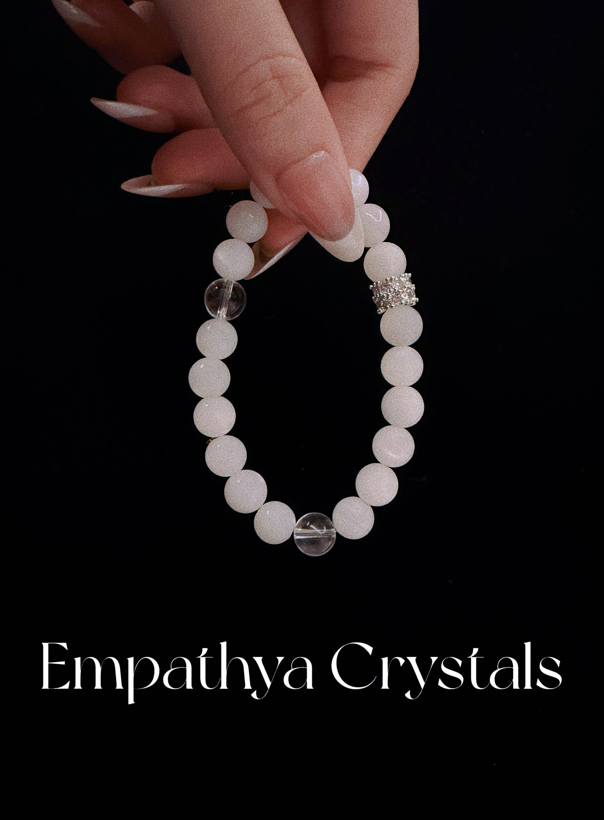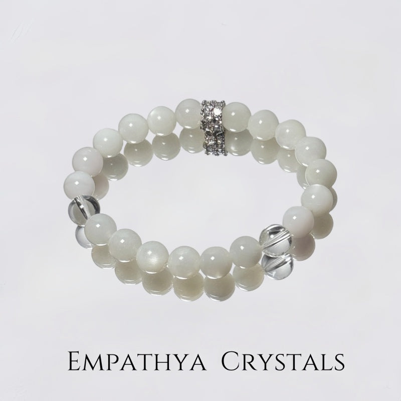 Lunar Aegis, crafted from 8mm White Moonlight Quartz and 8mm White Crystal, is ideal for creative professionals seeking inspiration and emotional stability. This piece harmonizes magnetic fields to dissolve stress and negativity, creating a serene mental space for innovative thinking. Its connection to the Crown Chakra enhances focus during creative workflows, while its luminous aesthetic elevates personal grace. Perfect for studios, meditation spaces, or high-pressure environments requiring calm and clarity.