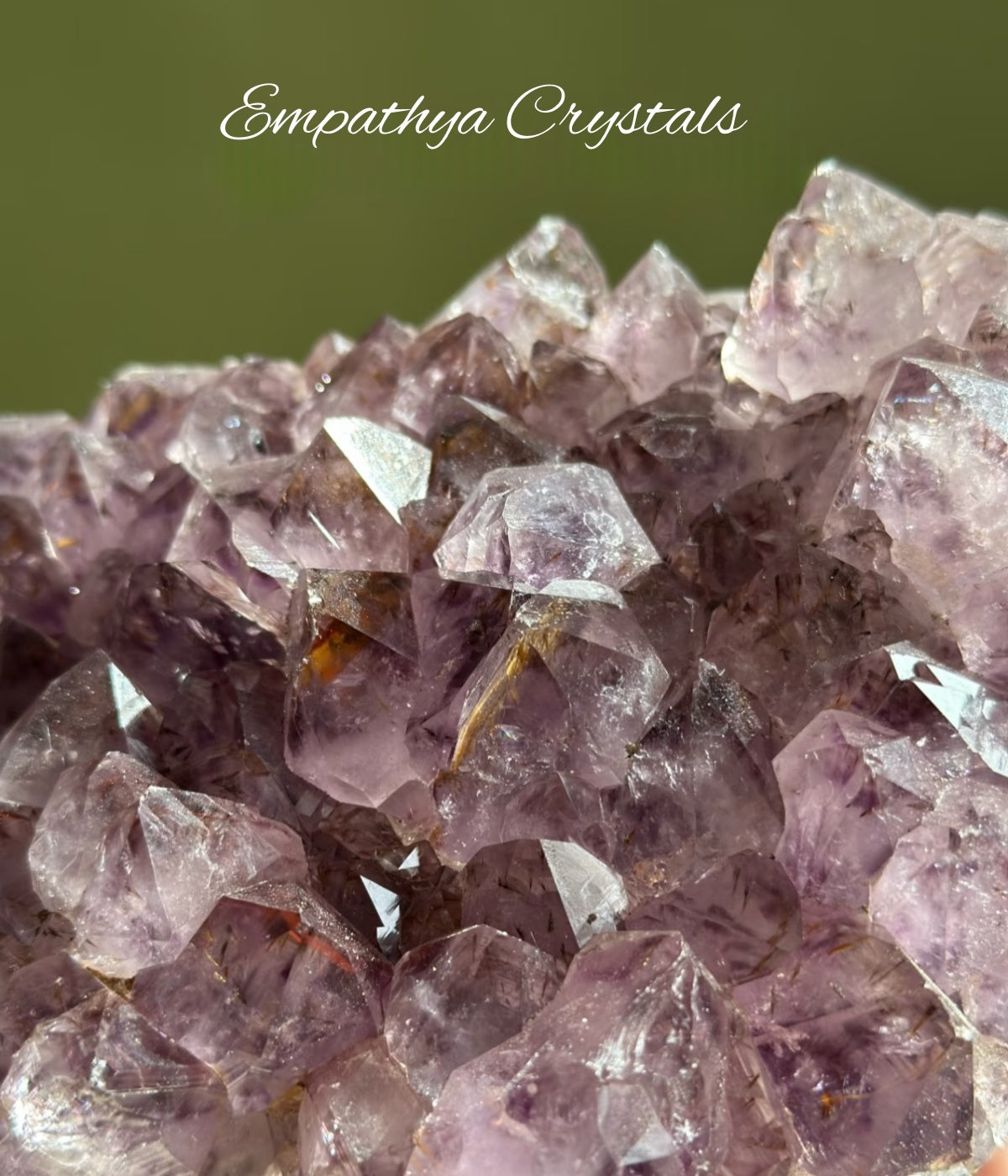 Discover the mesmerizing beauty of our Natural Titanium-Infused Amethyst Crystal Cluster from Uruguay. This unique formation showcases the harmonious coexistence of titanium metal and amethyst, creating a stunning visual contrast. The titanium-infused crystals exhibit a metallic sheen, while the amethyst retains its rich purple hue, radiating a calming and uplifting energy. This crystal cluster measures approximately 11-12cm in width, 4-5cm in height, and 19cm in length, weighing around 1.5kg. Dimensions are manually measured, with a possible 0.5cm error due to its irregular shape. Perfect for meditation, healing, or as a striking decorative piece, this crystal cluster brings a sense of balance and tranquility to any space.