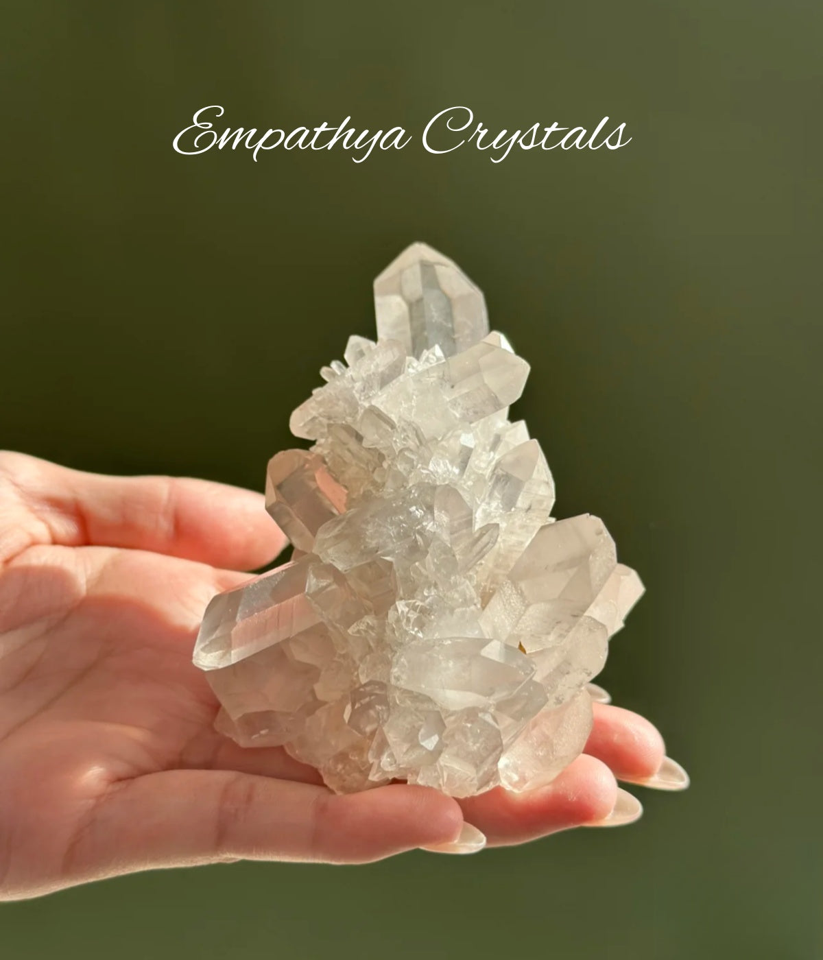 This Madagascar white crystal cluster is a luminous gem, as radiant as moonlight, embodying the essence of the earth accumulated over eons. Known as the "Stone of Purity," it purifies the aura, harmonizes energy, and restores the mind to a state of serene balance. Its translucent quality, reminiscent of frost on a winter morning, reveals a soft, layered beauty in the interplay of light and shadow. Perfect for meditation, healing, or as an elegant accent in any space, this crystal brings a gentle and sophisticated ambiance, immersing you in its pure, radiant glow.